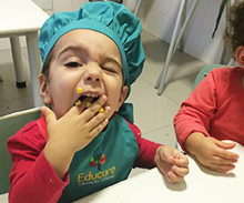 A Educare conta com uma equipe especializada em nutrição. Com a participação da família, elaboramos o plano alimentar e nutricional de cada criança, respeitando suas necessidades individuais. Além disso, nossos alunos têm a oportunidade de vivências coletivas em uma cozinha experimental. O espaço foi especialmente planejado para despertar o interesse pelos alimentos, suas cores, formas, texturas, origem, bem como sua história.